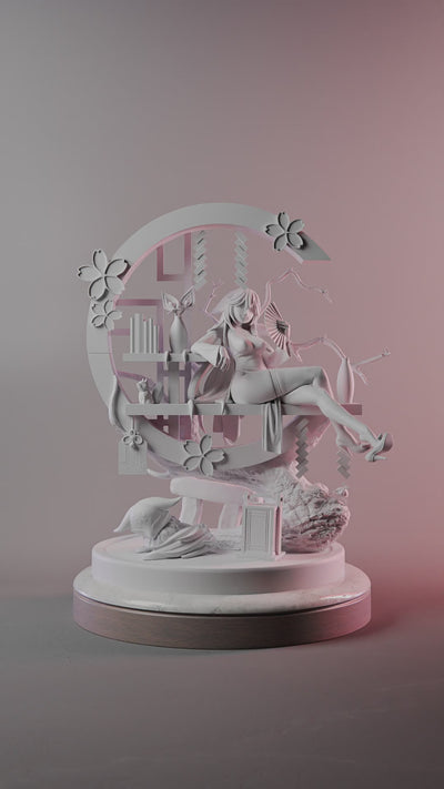 What sets this statue apart from mass-produced gaming figures? The answer lies in 12K printing technology. No visible print lines. No rough surfaces. Just impossibly smooth contours that capture every subtle nuance of the design - from individual sakura petals to the delicate fabric folds of her flowing robes, from the intricate architectural details to the mystical fox companion.