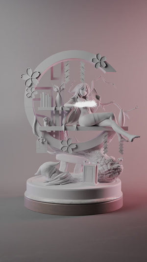This stunning sculpture brings Yae Miko to life in a moment of serene contemplation. Seated elegantly with refined poise, she holds her signature fan with graceful confidence - the perfect embodiment of her mysterious and sophisticated personality. Her relaxed yet commanding pose showcases the duality of her character: approachable shrine maiden and cunning kitsune familiar.